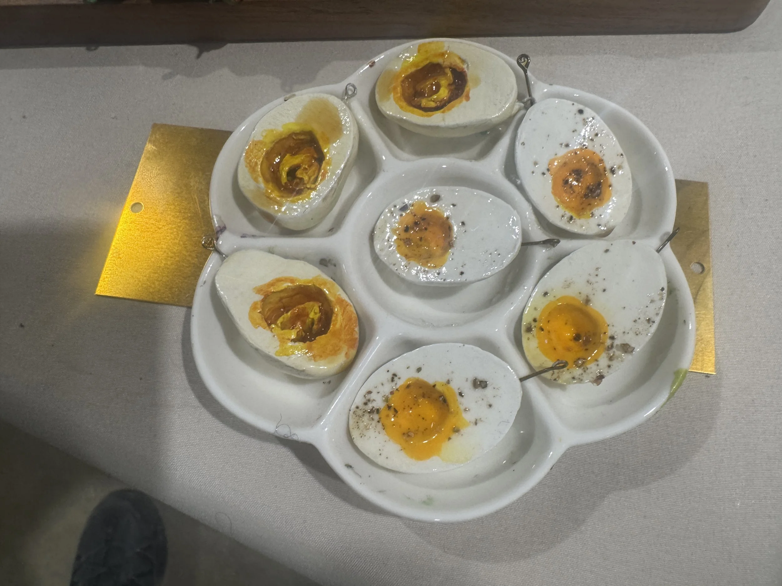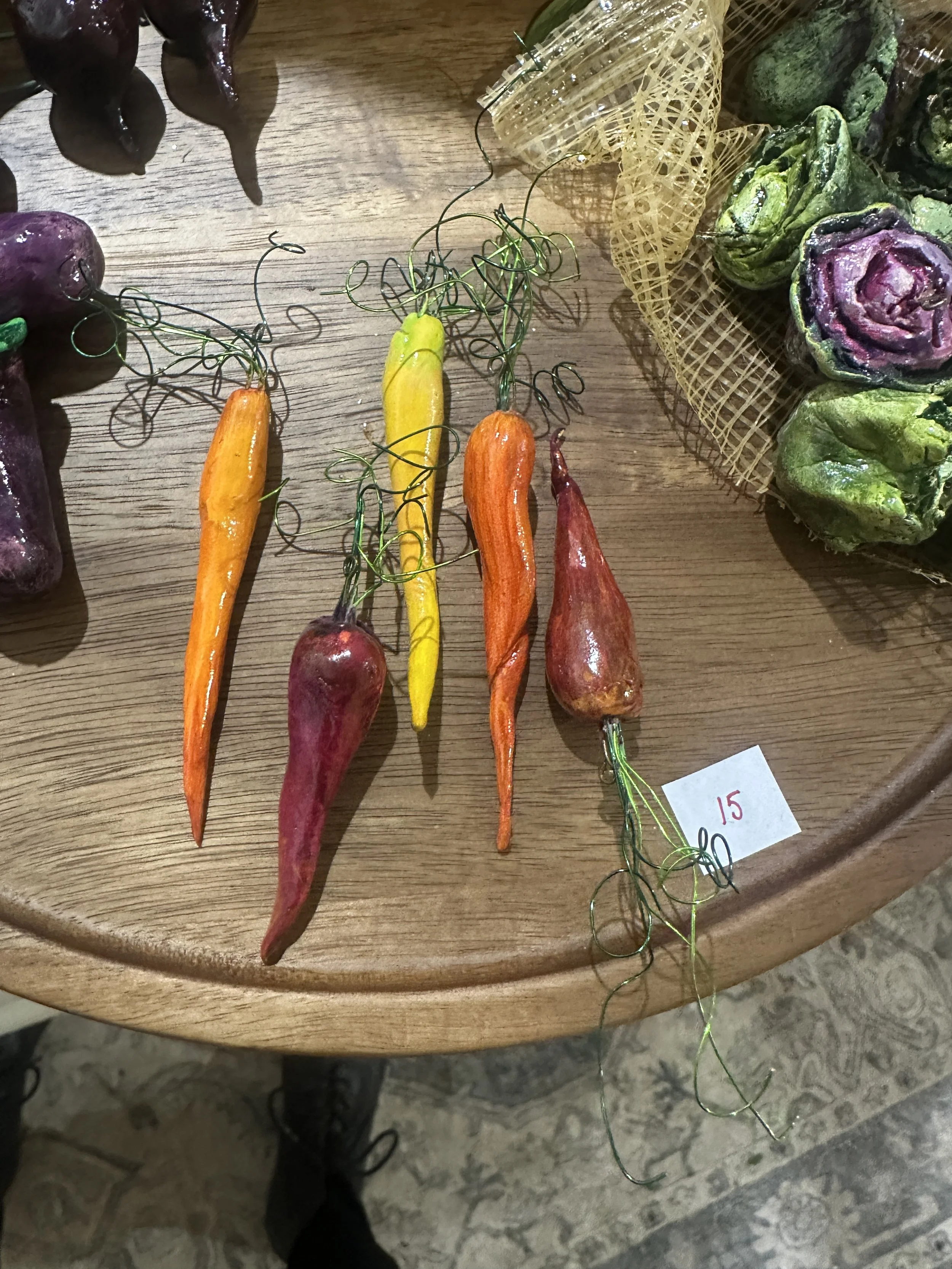 A mixed variety of miniature potatoes hand sculpted of clay and painted with care to create a believable realism and appeal.